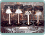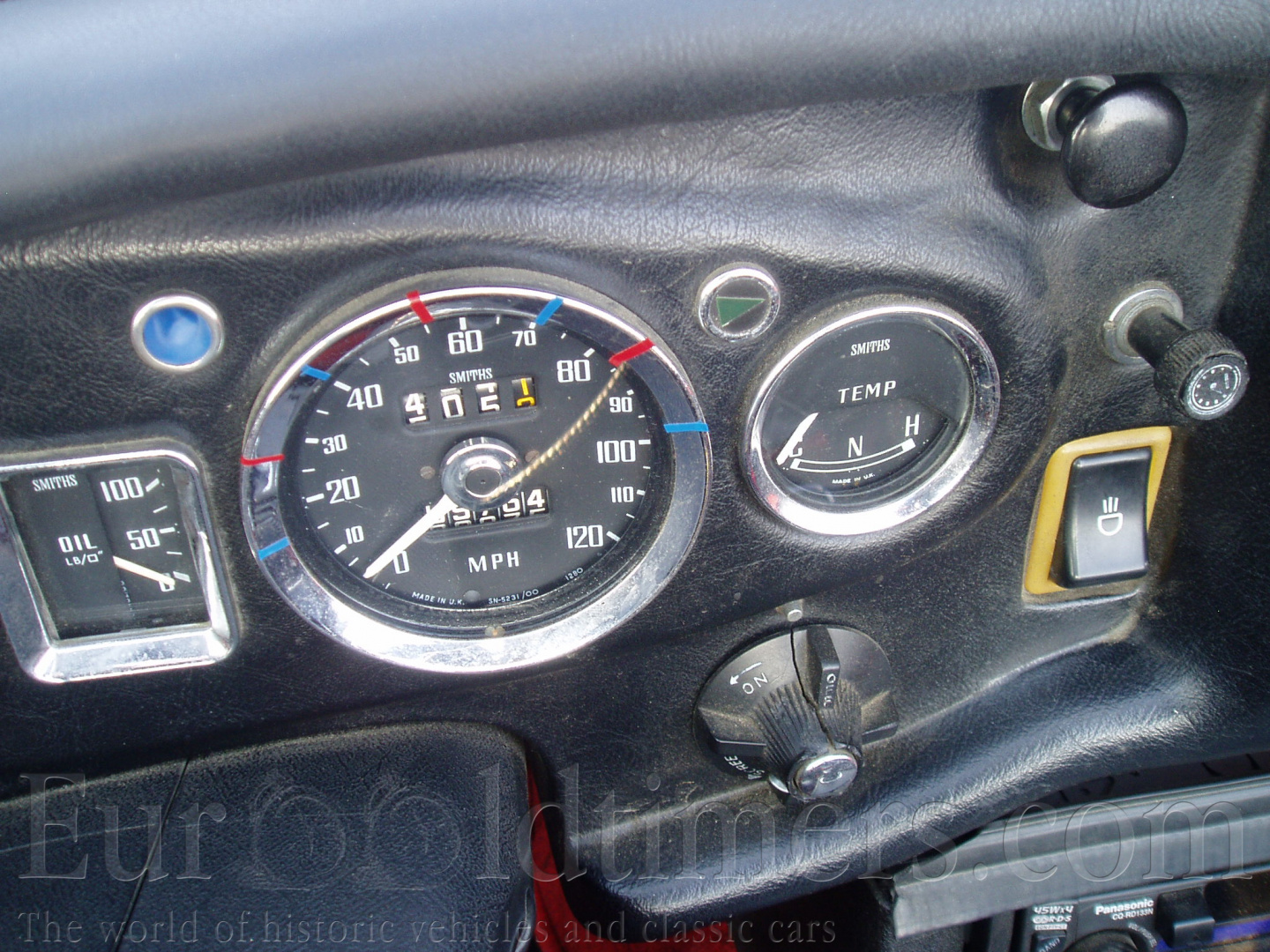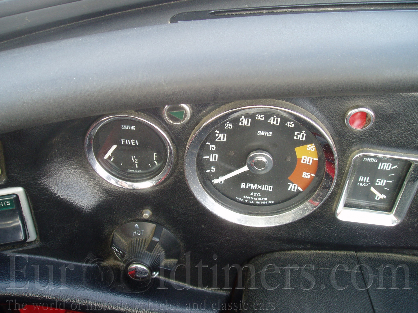 Na přehledné přístrojové desce je umístěn otáčkoměr, tachometr v mílích nebo v kilometrech, kontrola dobíjení, množství paliva a tlakoměr oleje. Dále je zde spínač topení , které je umístěné na příčce motoru v motorovém prostoru a napájeno horkou vodou z hlavy motoru. Nalevo se nachází spínač světel. Dálková světla se přepínají u volantu vlevo. Pravá páčka u volantu ovládá stěrač. Evropské modely měly dva, americké verze tři, to kvůli předpisům v USA, které stanovovaly % stěračů vůči ploše skla.