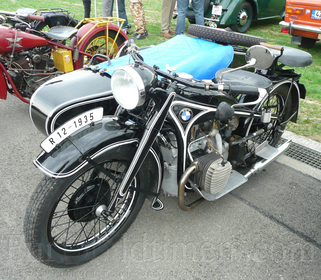 V roce 1935 představuje mnichovská firma nový typ. Jde o BMW R 12. Jeho pohon obstarával motor klasické bavorácké koncepce. Dvouválcový boxer s rozvodem SV. Jeho obsah byl 745 ccm. Přičemž vrtání i zdvih byly totožné - 78 mm. Při kompresním poměru 5,2 : 1 dával výkon 18 koní při 3400 ot. / min. při použití 1 kusu karburátoru. Pokud byly použity karburátory dva, byl výkon 20 koní / 4000 ot./ min. Byly použity karburátory zn. Amal 6 / 406 SP případně Amal 6/ 407 SP. Motor byl chlazený vzduchem.
