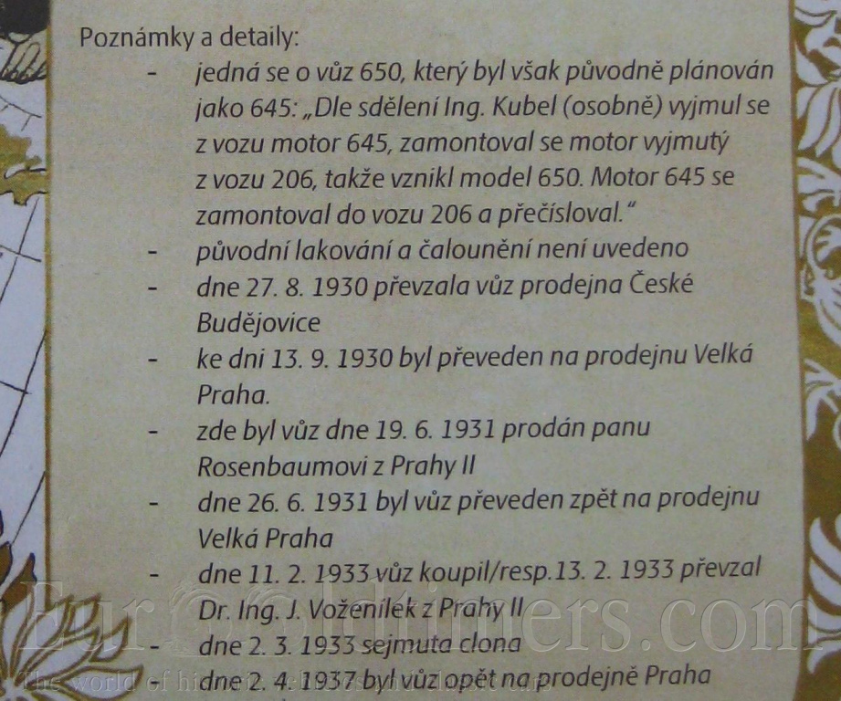 Počátkem 30. let vyrábí firma Škoda celou řadu vozidel. Podvozky typů 422, 430, 430 D, 645, 650 a 860 měly téměř shodnou konstrukci, lišily se jen velikostí, rozvorem a různými detaily. Jak již bylo zvykem, továrna dodávala různé typy karoserii. Navíc, dle tehdejších možností a zvyklostí, bylo možno zakoupit jen šasi vozidla, na které mohla kterákoliv tehdejší karosárna vytvořit zakázkovou karoserii. Vznikaly tak sportovní roadstery, coupé, pohřební vozy, valníky. Z karosáren bych jmenoval firmu Jech z Prahy, plzeňského Brožíka, pražského Uhlíka, vysokomýtského Sodomku aj. Typ 645 byl v roce 1932 přepracován na typ 650. Rozdílem bylo v podstatě jen zvětšení vrtání o 3 mm, což zvýšilo obsah motoru na 2704 ccm. Výkon stoupl na 50 koní. Do roku 1936 bylo vyrobeno 58 limuzin typu