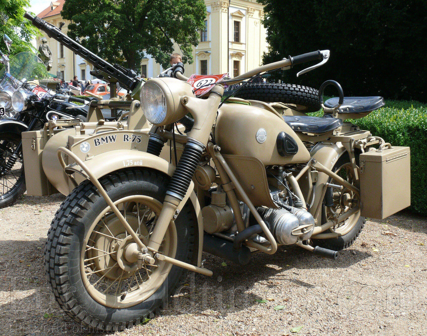 Původní zbarvení bylo tmavě šedé, tzv Dunkelgrau. Šlo o běžnou barvu vozidel používaných německou armádou v letech 1940-1943. V průběhu války se kamuflážní zbarvení měnilo, od jara 1943 se používaly na všech bojištích v Evropě různé odstíny světlosti barvy Dunkelgelb (písklově žluté). Na motocyklech R 75 se objevovaly varianty relativně nejsvětlejší.