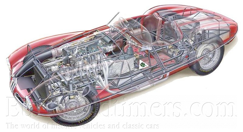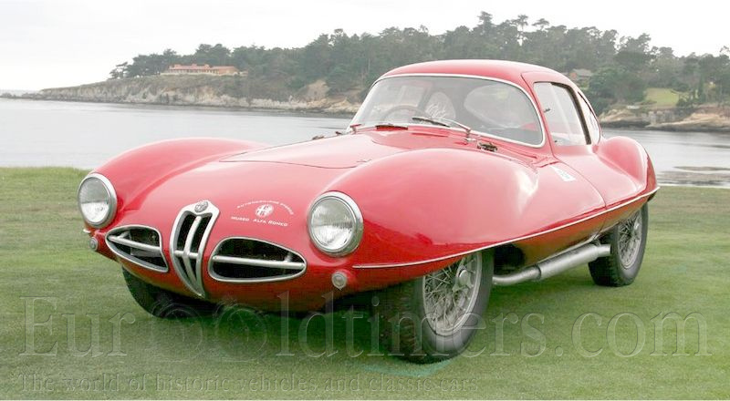 Popis: Prototyp Disco Volante s karosérií Touring představila Alfa Romeo v roce 1952. Karosérie připomínala létající talíř. Na prostorovém rámu z hliníkových trubek byly panely karosérie z hliníkového plechu. V roce 1953 postavila karosárna Touring ještě podobné kupé. Rozdíl byl v hmotnosti, která činila 750 kg a rozchodu 1235/1200.