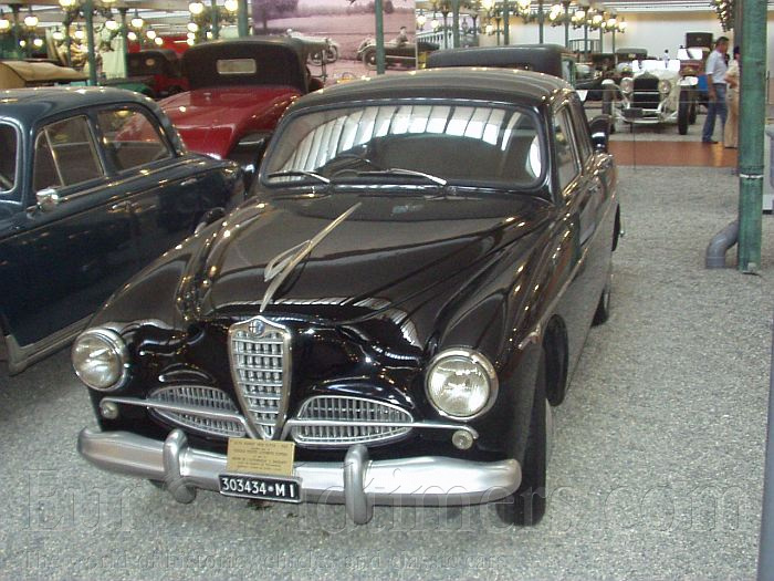 Popis: V padesátých letech zahájila Alfa Romeo hromadnou produkci automobilů. Typ 1900 byl uveden reklamním sloganem "rodinné auto, které vyhrává závody". Muzeu v Mulhouse vystavený vůz darovalo muzeum Luigi Bonfanti a italský oldtimer klub Venetie del Bassano del Grappa.