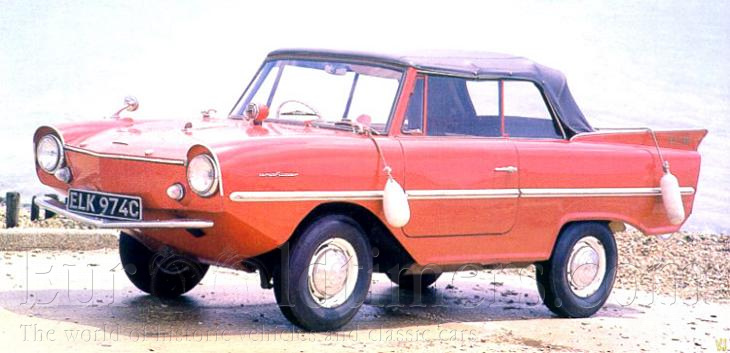 Historie: Německá firma Amphicar vyráběla v letech 1961 až 1967 obojživelné vozy s použitím mechaniky z anglického vozu Triumph Herald. Firmu založil Hans Trippel, který vyráběl obojživelné vozy už za druhé světové války. Celkem bylo vyrobeno asi 2800 vozů (jiné prameny udávají až 4500 vyrobených vozů a konec výroby v roce 1968) a většina z nich byla vyvezena do USA. Automobily Amphicar se prodávaly také pod značkou ACV. Amphicar byl stavěn v Berlíně (SRN) v letech 1961 až 1968. Jeho konstrukci navrhnul Hans Trippel. Celkově bylo postaveno 3878 kusů těchto obojživelných vozidel. Amphicar bylo vůbec první obojživelné vozidlo, jež bylo postaveno výlučně pro nevojenské účely. Amphicar byl poprvé představen na autosalónu v Ženevě jako prototyp s názvem Alligator. Od roku 1961 začala sériová výroba a vozidlo bylo pojmenováno Amphicar. Drtivá větsina produkce byla exportována do USA (celkem 3046 ks). Pohon ve vodě byl realizován pomocí dvou vzadu umístěných nylonových vrtulí. Bylo používáno i jiných motorů Triumph Herald (1250/50 PS, 1300/60 PS a dvoukarburatorová 1500 ccm). Amphicar byl nabízen ve čtyřech barvách: Beach White, Regatta Red, Lagoon Blue en Fjord Green (Aqua).