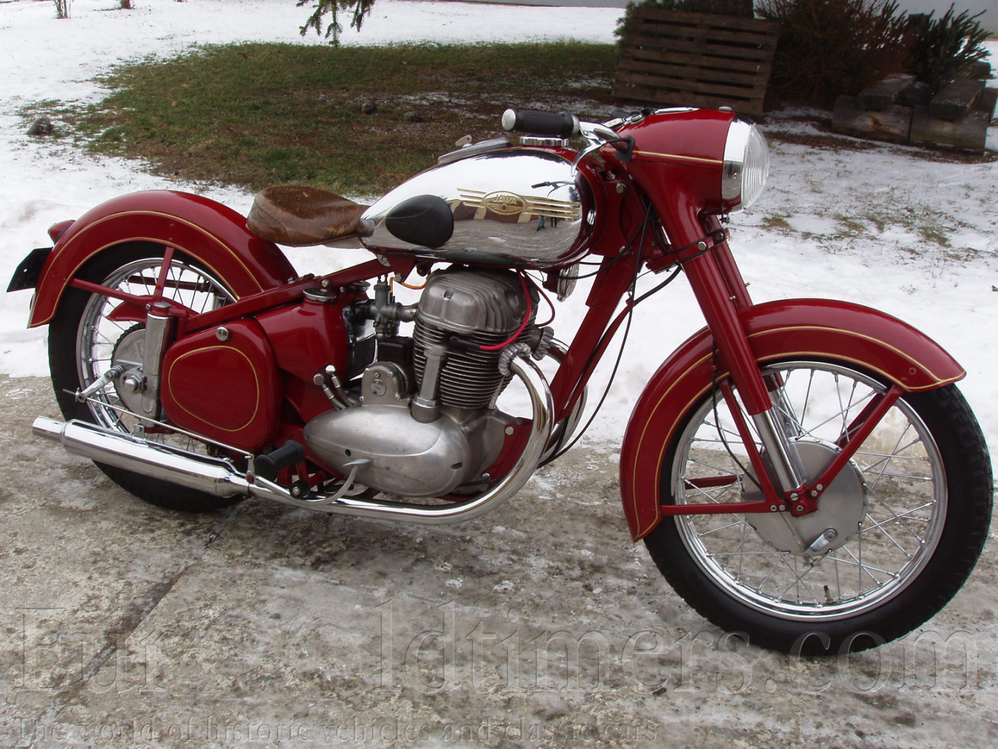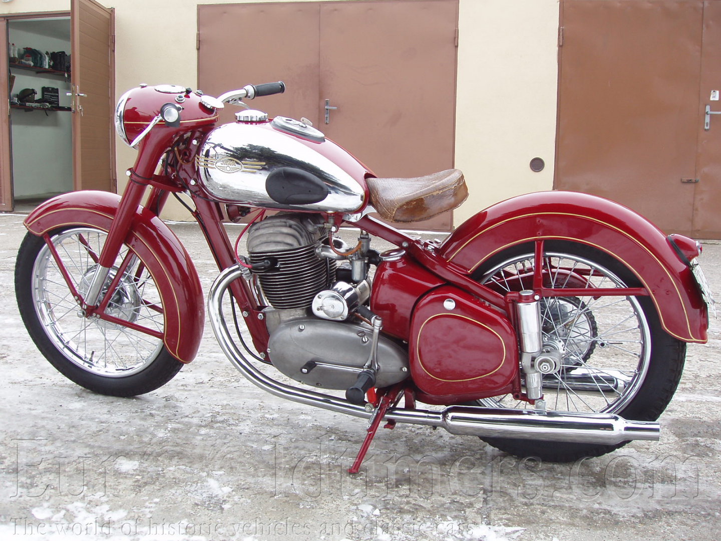 V poválečném období vyrábí naše motocyklové továrny dvoutaktní motocykly, které jsou určeny pro nejširší okruh pracujících. ČZ má známé typy CZ 125t a 150c, Jawa přichází se slavnými Jawa 250/11 „Pérák" . Na základě Ogar 350 je vyráběna i dvouválcová Jawa 350 s dvoudobým motorem. Tyto všechny motocykly byly spolehlivé a byly vyráběny a prodávány v relativně vysokých počtech (vyjma 350, kterých bylo méně). Z důvodu potřeby silnějších motocyklů pro použití hlídkami Veřejné bezpečnosti, případně z důvodu sportovního použití vyvíjí Jawa čtyřtaktní stroje. Je vyvinuta třistapadesátka, která byla jednoválcová. Bohužel k výrobě nedošlo. Přesto upravený motor byl později použit ve sportovních terénních strojích. Další konstrukcí byla čtyřdobá, dvouválcová pětistovka s rozvodem OHC. První prototypy byly vyrobeny již kolem roku 1948 a motory byly usazeny v upraveném rámu z „Péráka“. Další, už větší série prototypů (asi 60 ks) se vyrobila v roce 1950-51. Byly intenzivně zkoušeny a vylepšovány. Např. původní pohon rozvodu OHC byl řešen pomocí válečkového řetězu. Ten byl umístěn mezi válci. Ovšem nekvalitní materiál a teplo motoru způsobovaly jeho vytahování a posléze deformaci. Náhon byl překonstruován na pohon královským hřídelem.