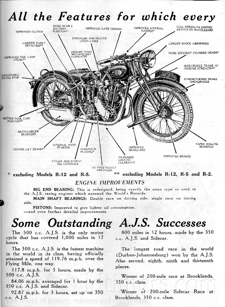 V roce 1922 vzniká u AJS stroj 250 OHV označený jako Big Port (z důvodu velkého průměru výfukového potrubí). V těchto letech vyrábí firma ucelenou řadu jiných modelů od 250 ccm do 1000 ccm. Šlo o jedno a dvouválcové motocykly. Značení bylo podle obecně daného čísla motocyklu a roku výroby, který byl značen velkým písmenem. (např. E byl rok 1924, F rok 1925, G rok 1926).