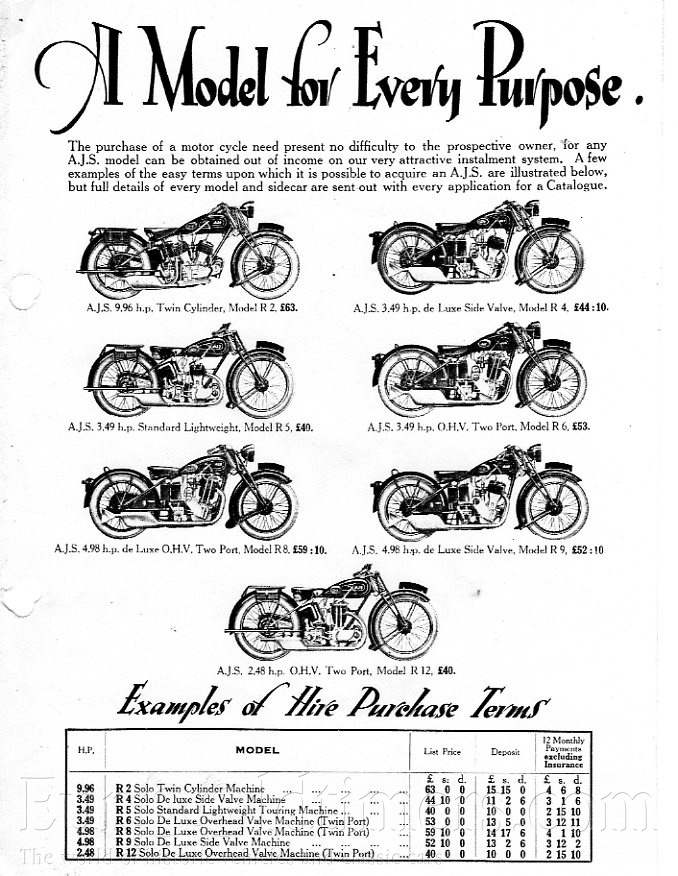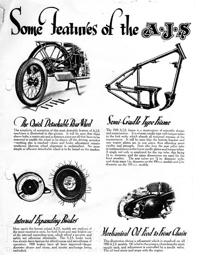 Dnes je čas od času vidět některý z motocyklů, které tato továrna produkovala ve 20. letech. Málo známým faktem je výroba automobilů. V roce 1929 vyrábí vozy s motorem 1018 ccm s rozvodem SV a výkonem 24 koní. Byly však celkem drahé. Vyrobily kolem 3300 kusů. Dále se zde vyráběly i autobusy. Nesly označení Pilot, následoval Commodore a nakonec Admirál. AJS postavila kolem 200 autobusů.