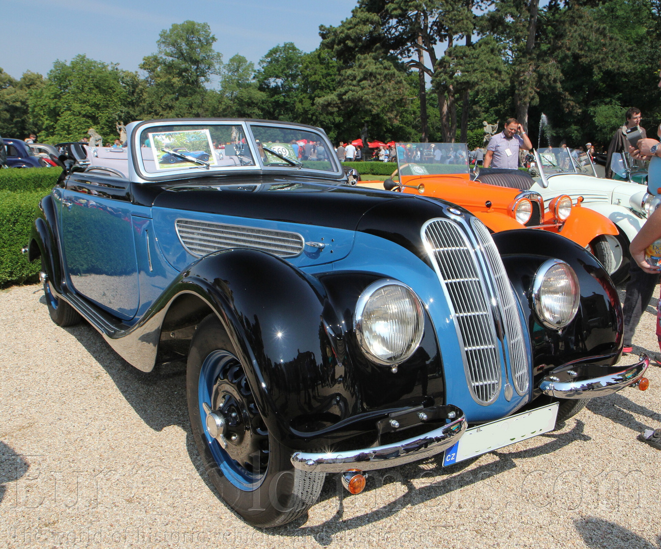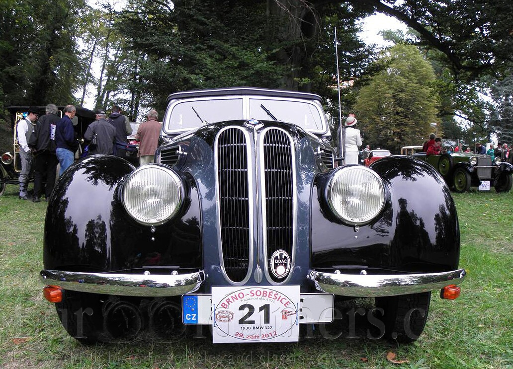 Historie: V roce 1916 začíná vyrábět Bayerische Motoren Werke sídlící v Mnichově letecké motory. Později nabíhá výroba motocyklů, které jsou dodnes typické svou koncepcí vzduchem chlazeného motoru „boxer“. V roce 1928 firma BMW fuzuje s továrnou Dixi v Eisenachu, kde se vyrábí automobily již od roku 1898. V době spojení obou firem se zde vyrábí Austin Seven, na který koupila firma Dixi licenci. Od roku 1928 nese označení BMW-Dixi. Šlo o malý čtyřválcový vozík, který byl velmi oblíben a přispěl k motorizaci Německa koncem 20. let. Počátkem 30. let se objevují vozy, které jsou již původní konstrukcí firmy BMW. V roce 1933 vzniká BMW 303. Je zde poprvé použito šestiválcového motoru typického pro všechny další vozy BMW. Typ 303 měl motor s obsahem pouhých 1200 ccm. Ten záhy nahradil typ BMW 315 s motorem 1,5 l. Tento vůz se stal základem pro řadu sportovně laděných vozů BMW. Koncem 30. let se objevuje nejhezčí předválečný vůz značky s typovým označením BMW 327. Popis: Kabriolet typu BMW 327 byl představen na podzim roku 1937. Vůz měl vpředu charakteristické ledvinky, typický znak vozů BMW používaný dodnes. Vůz byl na svou dobu velice elegantní, spolehlivý, komfortně vybavený, ale také náležitě drahý. Novinkou byly světlomety zapuštěné v blatnících, které spolu s kapotou motoru tvořily jednotný celek. Kapota se neotevírala do stran, jak bylo tehdy zvykem, ale byla uchycena na příčce motorového prostoru vzadu. Otevírala se vzhůru dozadu. Tento systém se v podstatě používá dodnes. Motor o obsahu 1971 ccm měl výkon 55 koní. Vůz dosahoval rychlosti 130 km / hod. Palivovou směs připravovaly dva spádové karburátory Solex. Rozvod elektřiny byl šestivoltový. Zapalování bylo dynamoakumulátorové. Na motor přes suchou spojku navazovala čtyřstupňová převodovka značky Hurth nebo ZF. Druhý až čtvrtý stupeň byl již synchronizován. Základem podvozku byl pevný rám, na kterém byla vzadu umístěna tuhá náprava s listovými půleliptickými pery a přední, dělená náprava, odpružená příčným listovým perem. Vůz měl jednookruhové kapalinové brzdy. Řízení bylo hřebenové. Na některé vozy se montovala jiná hlava motoru. Byla použita z typu BMW 328. Tyto vozy byly označované BMW 327/328. Měly větší výkon a sportovnější jízdu. Pro zajímavost uvádím, že tyto motory byly vyráběny ještě po válce v automobilce EMW, což byla původní firma, která podlehla znárodnění a dále v anglické firmě Bristol. Motor byl použit i v typu AC E. BMW 327 byly různě karosovány včetně typu coupe. Také se staly předmětem individuálních karosářských kreací renomovaných karosáren.