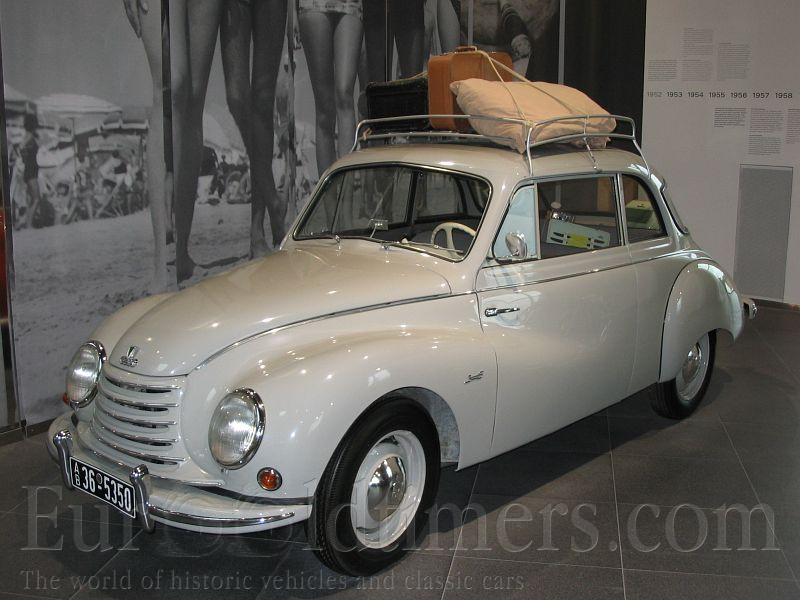 Historie: Německou firmu DKW založil dánský konstruktér Jörge-Skafte Rasmussen. Firma vyráběla od roku 1919 motocykly. První automobil byl vyroben v roce 1928. Vozy DKW používaly dvoutaktní motory a od roku 1931 měly přední pohon. V roce 1932 vznikla sloučením firem DKW, Audi, Horch a Wanderer skupina Auto-Union. Její výrobní závody zůstaly po válce ve východním Německu. V roce 1949 byla obnovena firma Auto-Union v západním Německu s novými výrobními závody v Ingolstadtu a Düsseldorfu. Od roku 1950 vyráběla vozy pod značkou DKW, opět s dvoutaktními motory. Jejich výroba byla ukončena v roce 1966, posledním vyráběným modelem byl vůz DKW F 102. Od roku 1958 patřila firma automobilce Daimler-Benz a Mercedes pro ni vyvinul čtyřtaktní motor. Ten se dostal do výroby pod značkou Audi v roce 1965, když byla obnovena značka Audi, která převzala firemní logo Auto Union a výrobní závody DKW. Ve stejném roce automobilku Auto−Union převzal koncern Volkswagen.