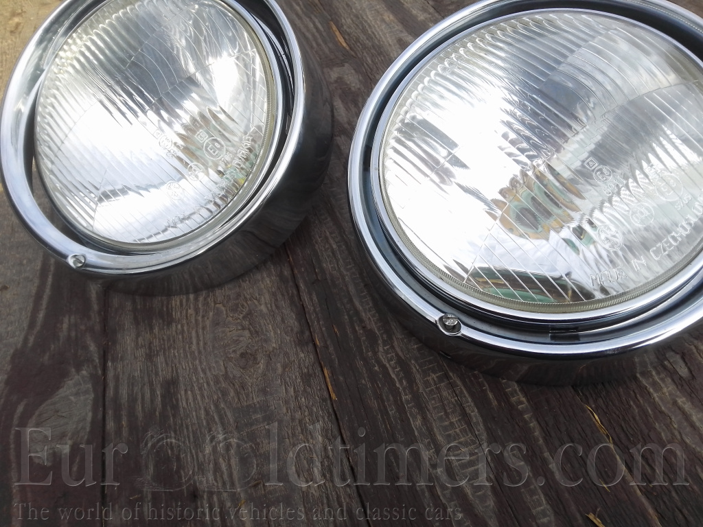 Prodám krásná přední světla Škoda 1201 1202 Stejšn. Světla jsou moc pěkné ještě údajně nové Uloženky vše je znatelné podle foto.
