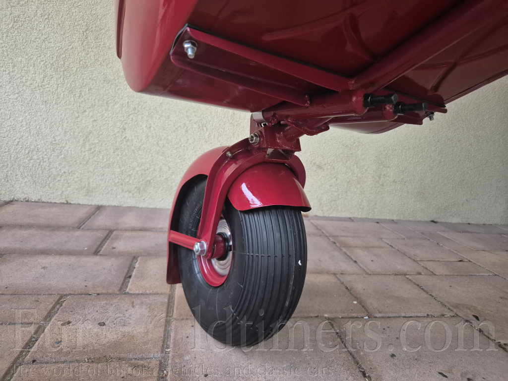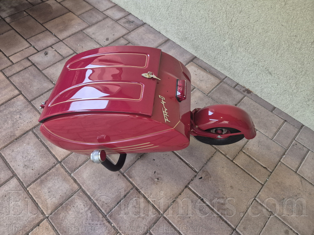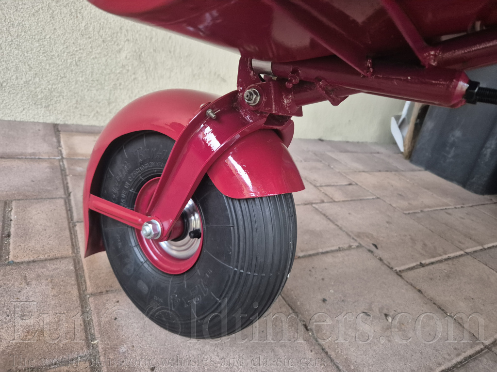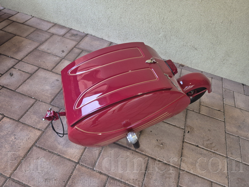 Prodam navesny (privesny) vozik za veteran jawa cz PAV 40. Po kompletnej renovácii, rucne malovane zlate linky, vacsina dielov nova vratane pneu. Jedna sa o prvy typ s odpruzenim pruzinami, neskor pav 41 mal gumene silenbloky. K voziku je povodny stitek + novy cisty stitek. Vhodne na jawu 250 350 perak cz 125 175. Cena 45 000,-czk Lokalita Bratislava po dohode moznost dovozu Breclav Brno Praha.