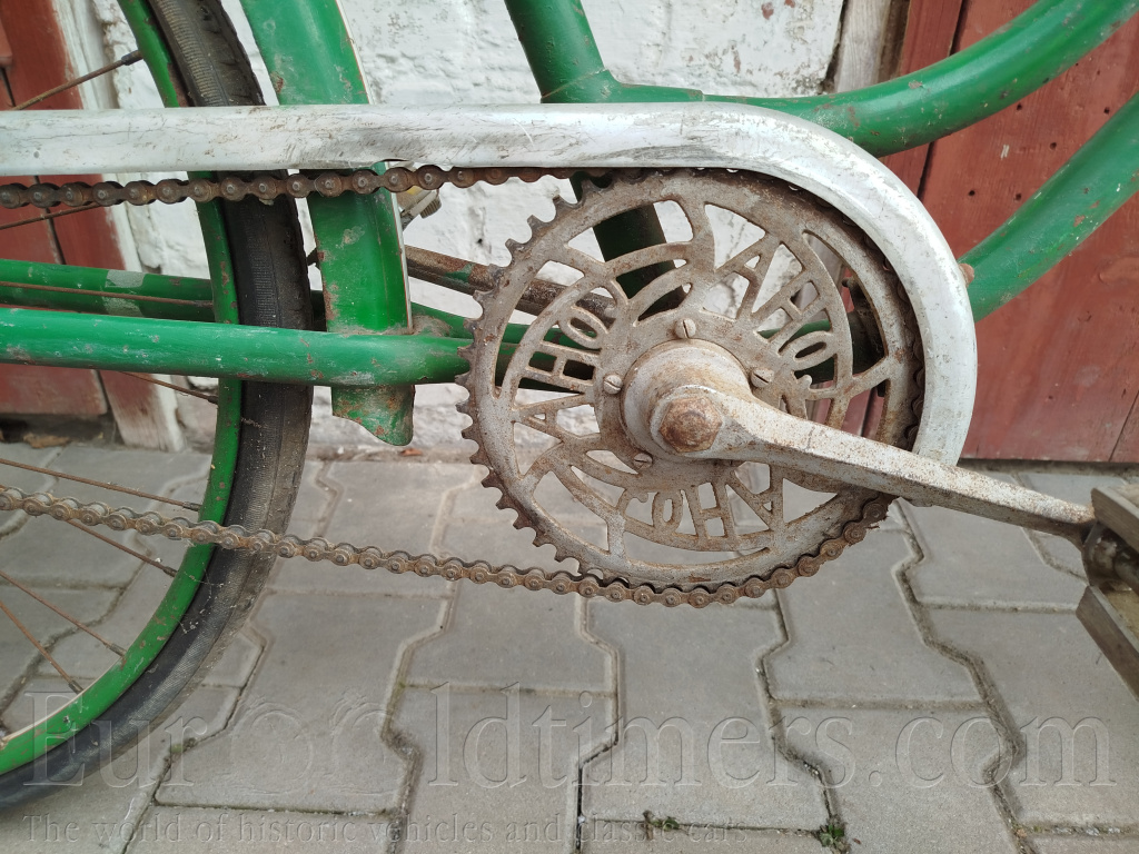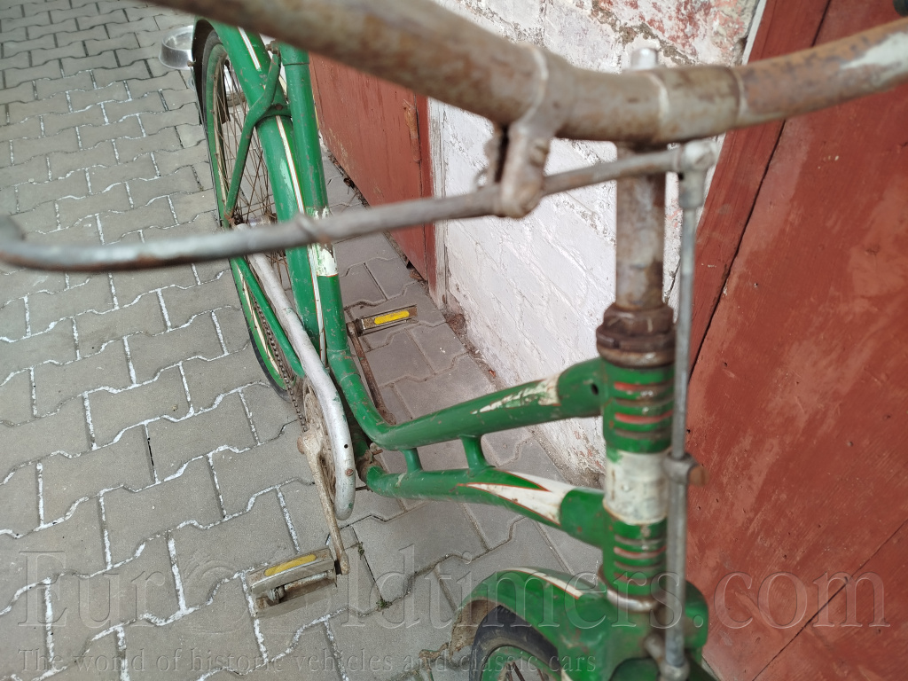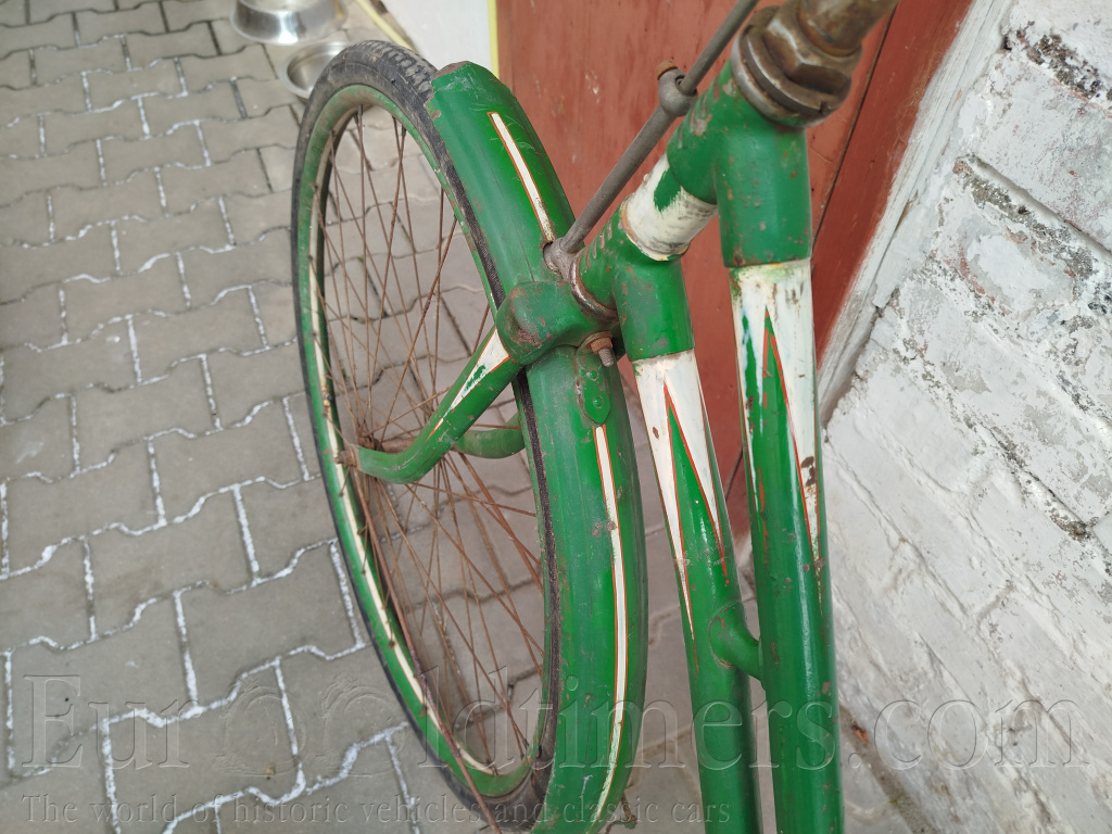 Prodám historické jízdní kolo Ahoj v dámském provedení. Je to výrobek firmy Jan Machek Autfit (motocykly Ogar) Praha. Kolo je z devadesáti procent v původním laku. Některá místa byla v minulosti opravována zelenou barvou. Pedály nejsou původní, pravděpodobně ani sedlo. Falcové ráfky, nechybí žádná špice. Zajímavý zámek v záchytu torpeda.