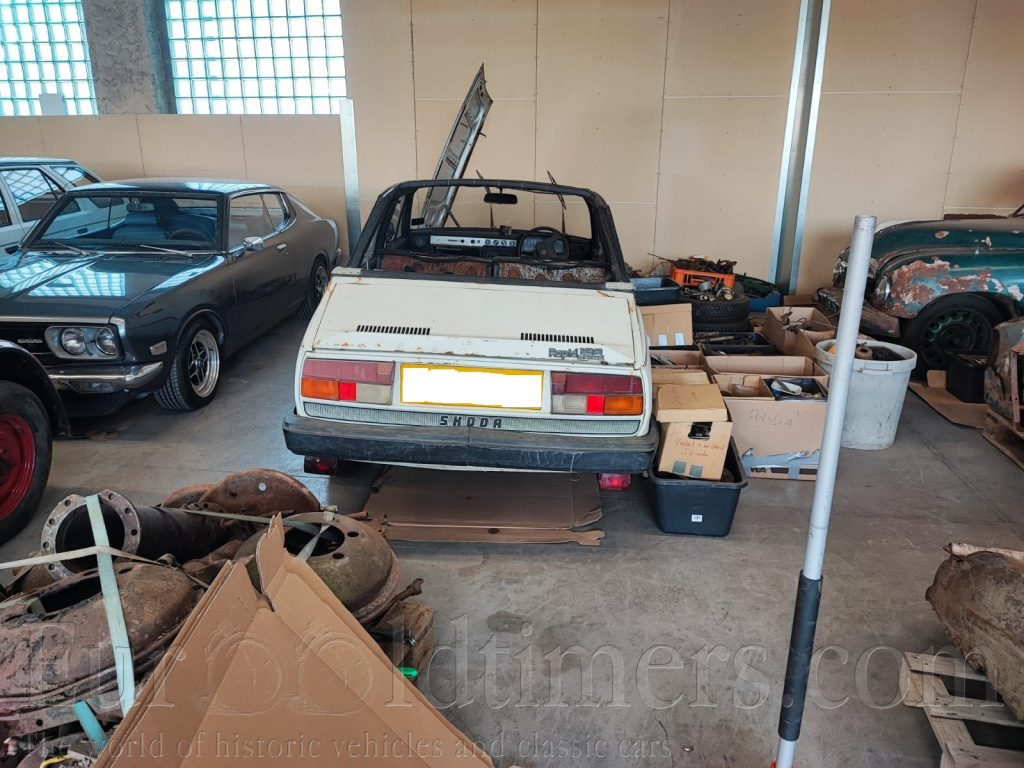 auto před renovací, všechny díly k renovaci k autu mám úplně nové nikdy nepoužité včetně plechařiny, té první se správným rádiusem a nevymačkaných forem, vše tak jak jsem je časem dokoupil, chybí jen nová podlaha, tu mám slíbenou. K autu je ještě druhý vykuchaný rapid na díly, tak jak jsem ho koupil, bez motoru a zadní nápravy. Některé díly navíc. Na levém předním kole je kolo z felicie, nesedí rozteč a nechtěl jsem, aby auto leželo, kola s disky jsem dosehnal. Krom podlahy slušný předrenovační stav. Pro fandu značky.