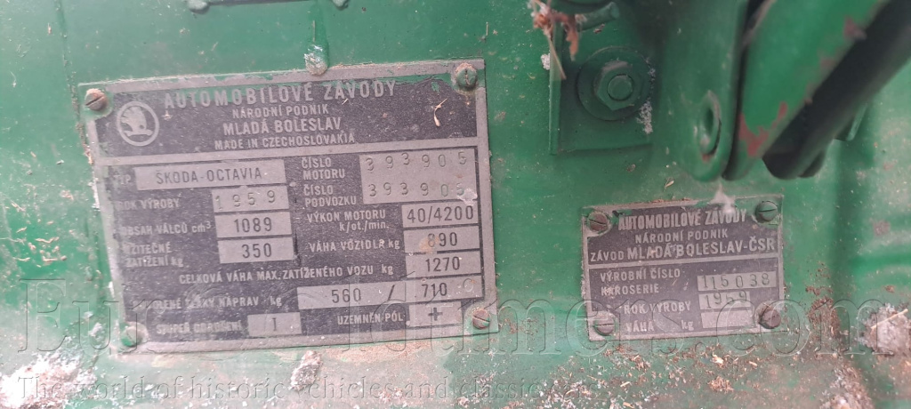 Prodám Škoda Octavia 440, r.v 1959. Nálezový stav. Doklady od koupi vozidla jsou, vůz bez TP, chybí převodovka a vodní pumpa.